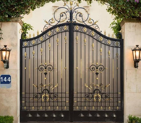 Puerta de hierro forjado de diseño moderno, puerta deslizante de entrada doble individual para entrada de pasarela para puerta
